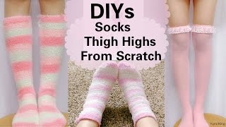 Diys Diy Fuzzy Socks Knee Socks Thigh Highs From Scratch Using 3 Different Materials Youtube